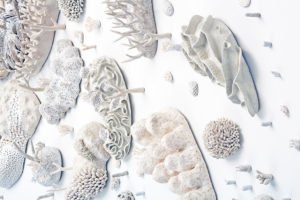 Courtney Mattison is an artist and activist – an artivist to use her word – whose goal is to raise public awareness of the scale and severity of the threats facing coral reefs around the world and to inspire action to protect them. She creates huge coral reef sculptures from ceramic, spending countless hours crafting individual coral polyps in meticulous detail in her Denver studio.
